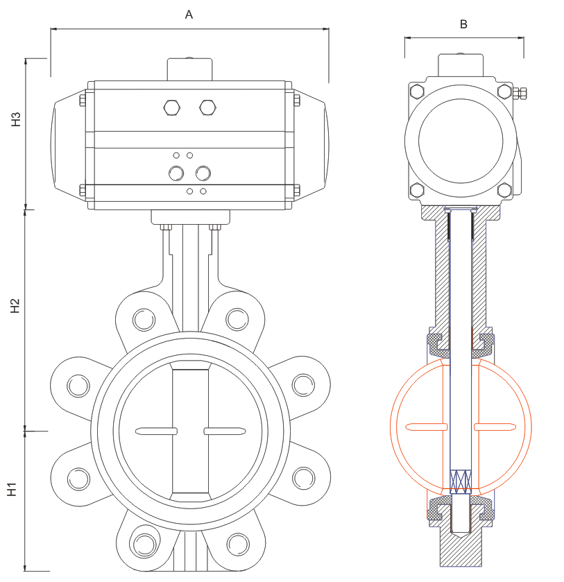 氣動(dòng)蝶閥是以壓縮空氣為動(dòng)力(正常情況下供氣壓力為0.4~0.6MPa),通過(guò)活塞齒條與齒輪的機(jī)械傳動(dòng),  |